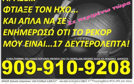 ΣΤ 1,82€/1’ ΚΙΝ 2,18€/1’ συμπ/νου φπα & τηλεπικοινωνιακό τέλος. Help line 2109472166.